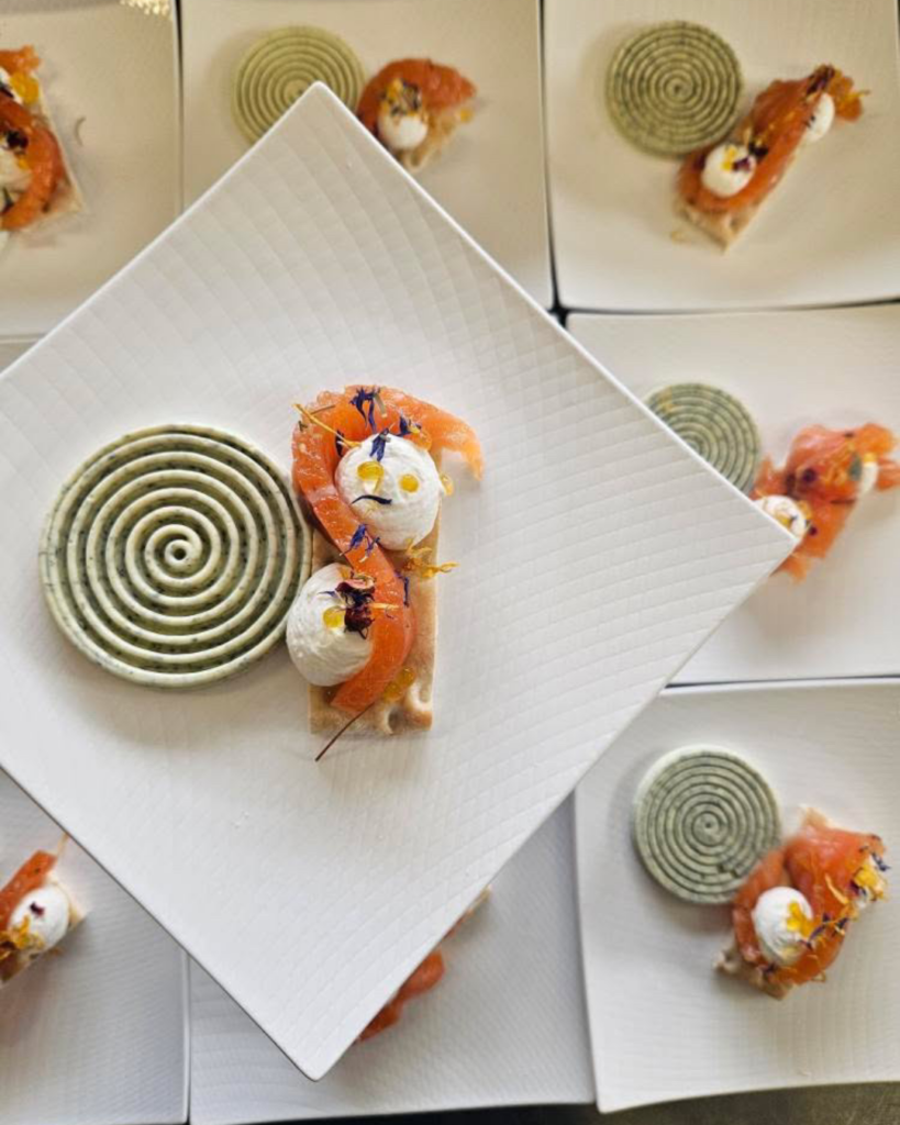 [Photo 1] : saumon gravlax, crème à l’aneth et ses perles de citron.